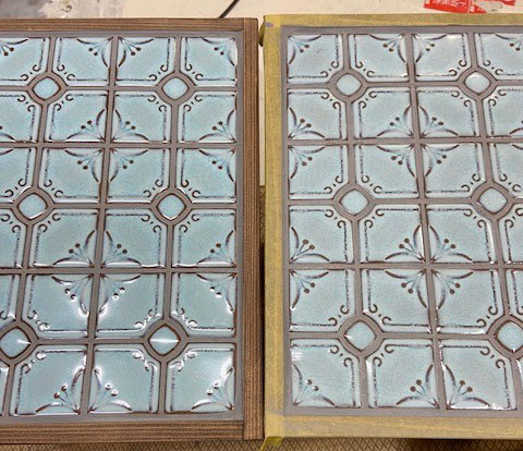 サイドテーブルにもなるタイル張りスツール仕上げ 2020/01/15 サイドテーブルにもなるタイル張りスツール 仕上げ サイドテーブルにもなるタイル張りスツール仕上げ こんばんは、tukuru woodwork fujimotoです。 昨日の続きです。 目地が乾いたら仕上げ作業です。 タイル表面や回り、枠の縁に残った余分な目地材を削って落とし キレイに磨きます。 マスキングテープを剥がして枠や脚を乾拭きしてから もう一度軽くオイル塗装して完成です。 右がbefore左がafter タイルの艶が違います。 ショップ お問い合わせ