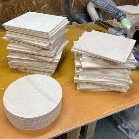 アンティーク調ハンドメイドスツール 作成2 2020/01/17 アンティーク調ハンドメイドスツール 作成2 アンティーク調ハンドメイドスツール 作成2 こんばんは、tukuru woodwork fujimotoです。 脚パーツの切り出しの次は座面パーツの切り出しです。 ツクルウッドワークのアンティーク調ハンドメイドスツールは座面の張替えが出来るように2パーツにして取り外しが出来るようにしています。 1脚に付き座面パーツが2枚。 1枚1枚型紙で材に印を入れてハンディージグソーで切り出していきます。 今はキレイに切り出せますが始めたころは何枚も無駄にしました。 座面パーツが切り出せたら次は材にサンダー掛けします。 お問い合わせ 工房