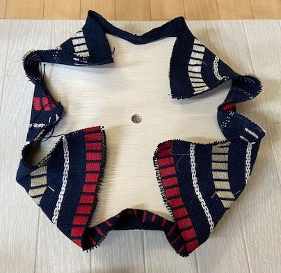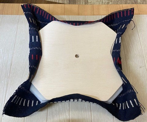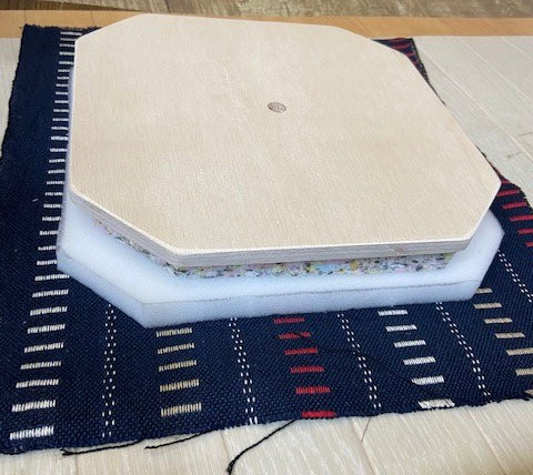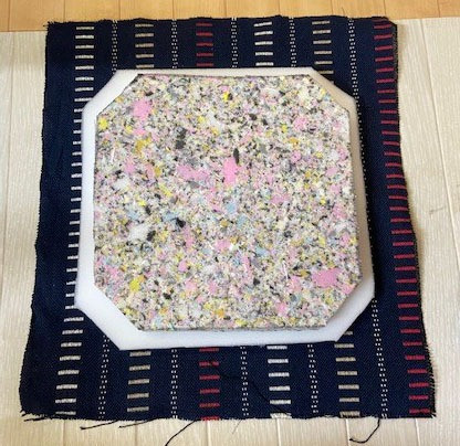 先ずは張るファブリック裏にして置きソフトウレタン、チップウレタンの順に置きます。
