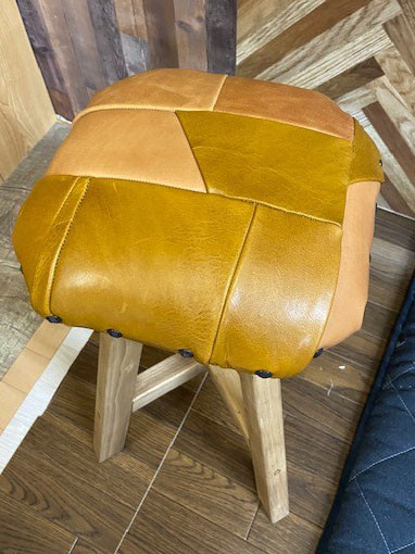 座面はma_yuさんオリジナルでバッグ作成で出た革をパッチワークしたものを送って頂きました。