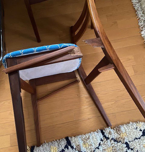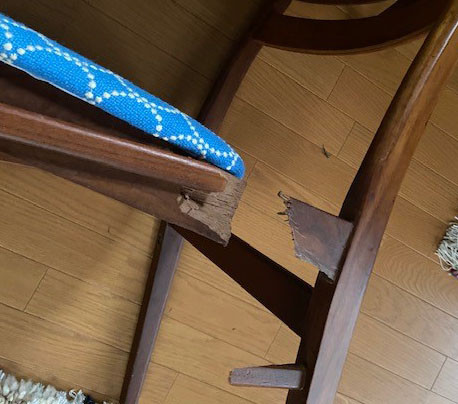 先日リビングでご飯を食べている時に座っていた椅子が壊れて崩壊・・