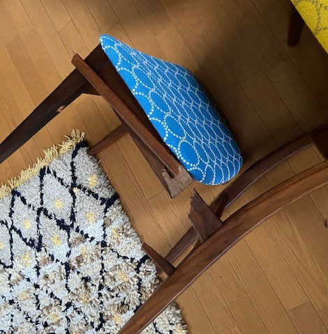 タンバリンの座面に張り直したヨーロッパのビンテージチェアーを昨年8月に購入
