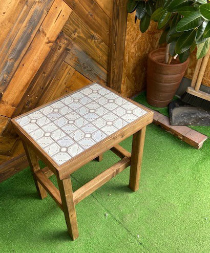 サイドテーブルにもなるタイル張りスツールジャスミンワイド