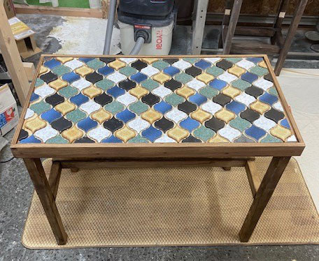 在宅勤務用タイル張りテーブル2 2020/04/08 在宅勤務用タイル張りテーブル 在宅勤務オフィス 在宅勤務用タイル張りテーブル 在宅勤務オフィス こんばんは、tukuru woodwork fujimotoです。 奥さんからのオーダーで急いで作成しているタイル張りテーブルにタイルを張りました。 在宅勤務用でパソコン作業をメインに使用するとの事なので天板の光が反射しないようにマット系のタイルを多用してます。 マットブラック、マットホワイト、マットブルー、マットグリーンの4色と ブラウンのランダムミックスです。 お問い合わせ