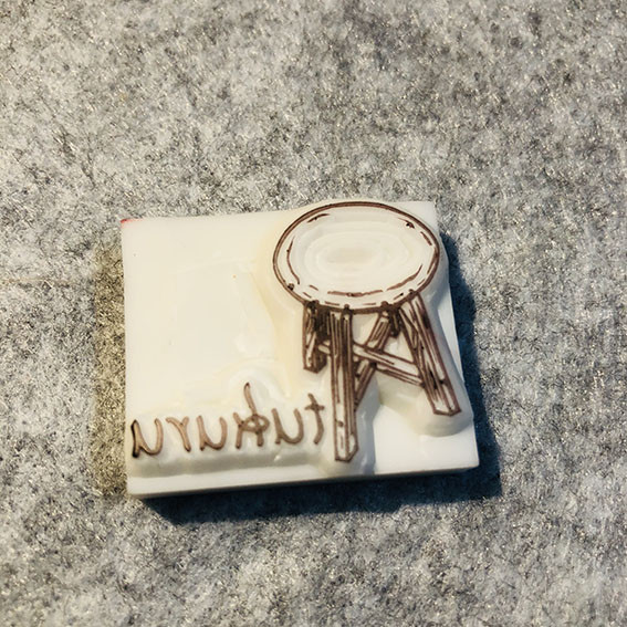 お世話に成っているfloatさんに以前紹介頂いたケシゴムハンコ作家のケシゴムセイサクショさんにスツールのハンコを依頼ました。