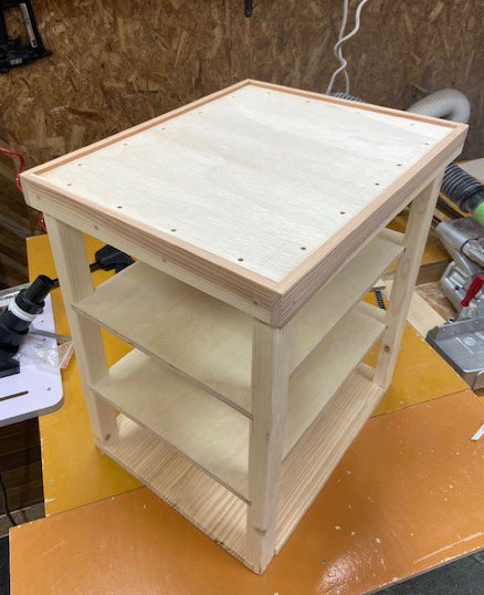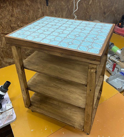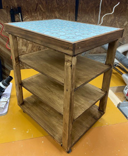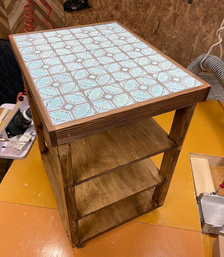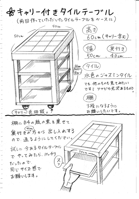 前回ご注文頂いたタイル張りテーブルに棚を増やしてキャスター仕様にとの事です。