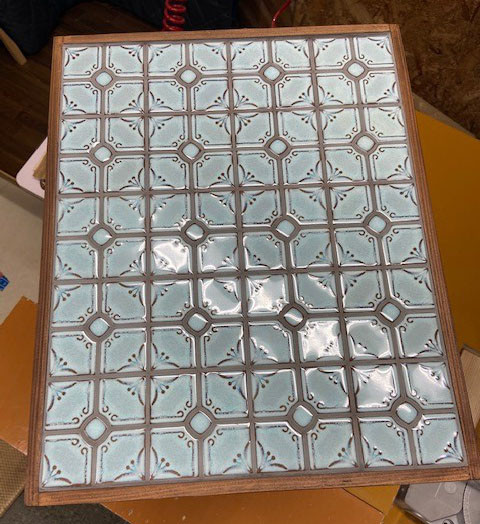 今回の天板はランタンタイルでなくてジャスミンモザイクタイルのターコイズになります。