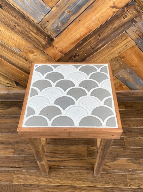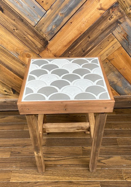 サイドテーブルにもなるタイル張りスツール 波紋 ねずみ