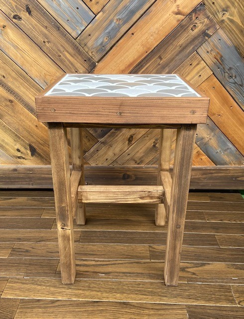 古窯変 波紋タイルで作成した新サイドテーブルにもなるタイル張りスツールの紹介です。