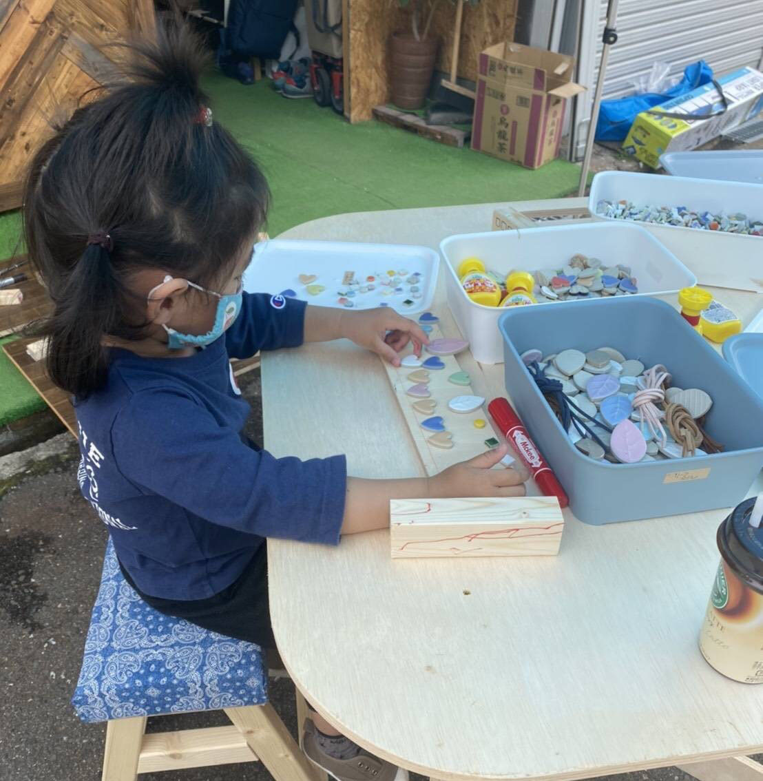 おうち時間でストレスと溜まってきているので工房の前にターフを立てて簡単ワークショップを開設して遊びに来てもらいました。