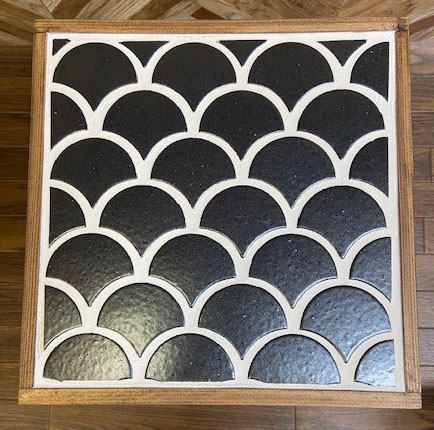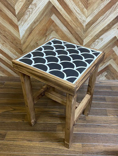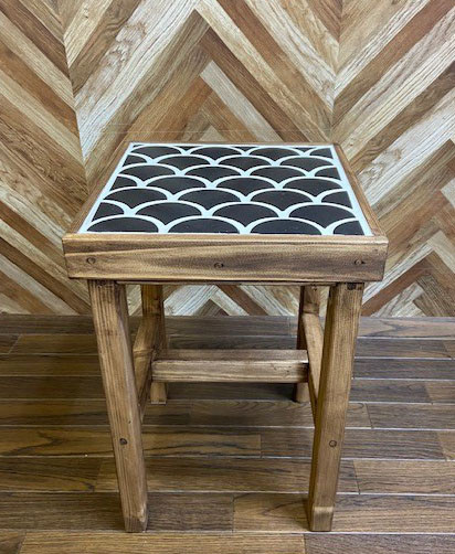 サイドテーブルにもなるタイル張りスツール波紋 天正黒