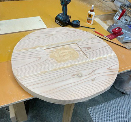 センター部分にタイルを張る為の溝をトリマーで掘ります。