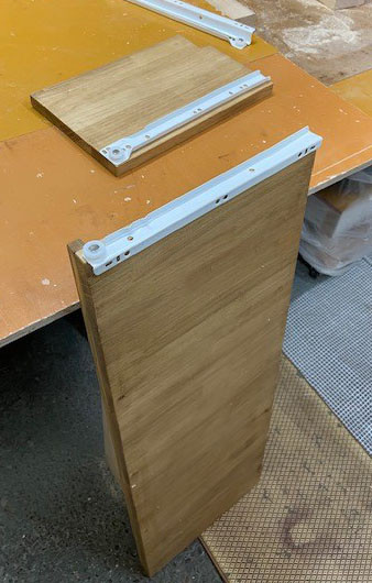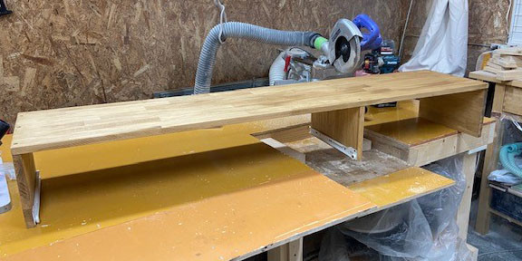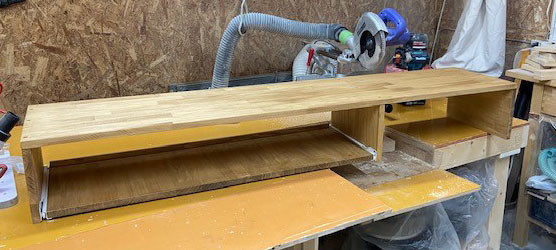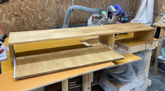 縦の仕切は天板に付けるだけでは強度が取れないので裏側上部に5㎝補強を付けて2点留めで強度を確保しました。