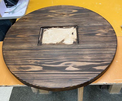 スツールの場合は縁より1~1.5㎜ぐらい落としてタイルを張るのですがテーブルはタイル部分に熱いものを置くので逆に0.5㎜~1mmぐらい上げてタイルを張ります。