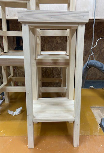 70cmの高さにするとタイル座面が重いためバランスが悪くなるので下の補強部分を棚にして物を置いてもらう事でバランスを取るようにします。
