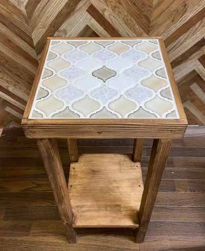 サイドテーブルにもなるタイル張りスツールランタンホワイトミックス