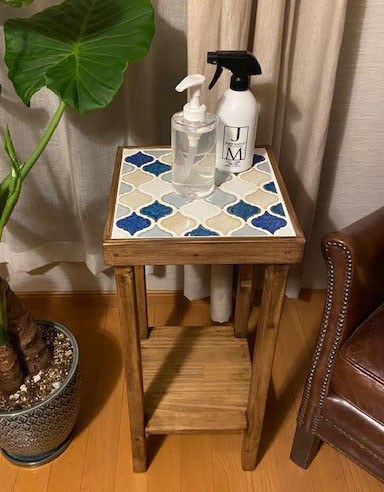 タイル張りスタンドランタンブルーミックス 2020/07/03 タイル張りスタンドランタンブルーミックス 手の消毒液用スタンド タイル張りスタンドランタンブルーミックス 手の消毒液用スタンド こんばんは、tukuru woodwork fujimotoです。 タイル張りスタンド完成しました。 天面30㎝x30㎝ 高さ70㎝ テーブルと同じ高さで消毒液が使いやすい高さに成っています。 タイルはランタンタイルで清潔感のあるブルーミックス。 下の補強は棚に成っていますのでストックなど置けるように成っています。 お問い合わせ