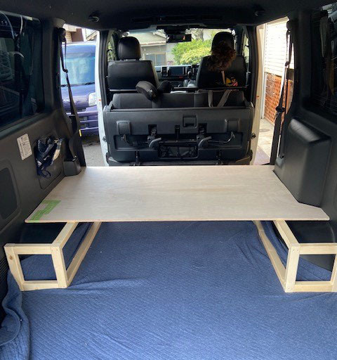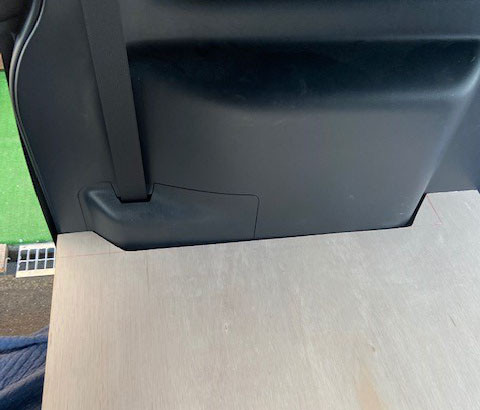 合板を内装の形状に合わせてカットして箱馬に載せます。