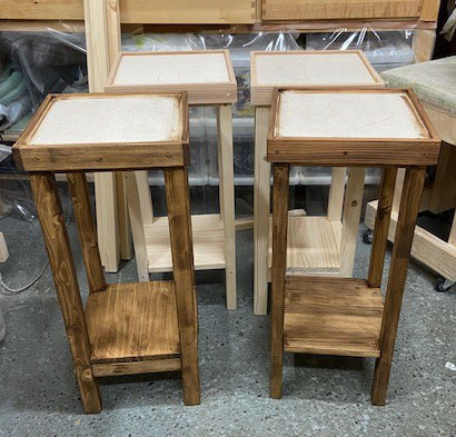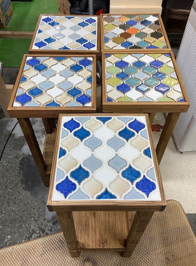 タイル張りスタンドオーダー頂きました。 2020/07/10 タイル張りスタンドオーダー頂きました。 新色追加 タイル張りスタンドオーダー頂きました。 新色追加 こんばんは、tukuru woodwork fujimotoです。 手の消毒液用タイル張りスタンドオーダー頂きました。 ランタンブルーミックスが2脚 別々のお客さまです。 どちらのお客さまもランタンブルーミックスをオーダーしてくださっており 消毒液用なので爽やか系の色の方が好まれるのかもと思い新色もついでに作成中です。 右側が新色ですがまだ目地入れが終わってません。 雨が続いて湿気が多いので目地材の乾きが良くなのでい慎重に作成してます。 完成したらまたアップします。 お問い合わせ