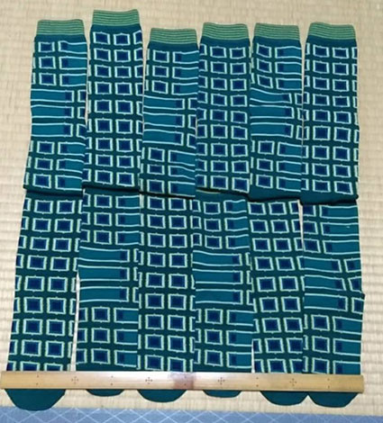 小さく伸びの有る靴下は座面用の生地には向いてないのですが芯地を貼ってパッチワークすれば何とかなるかもしれないので一旦靴下をお預かりしました。