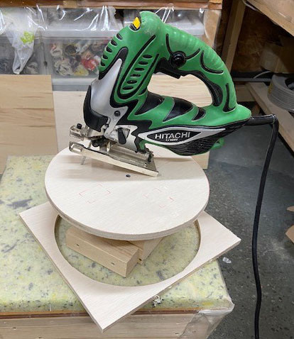 ハンディージグソーで切り出し 2020/08/02 ハンディージグソーで切り出し ハンディージグソーで切り出し こんばんは、tukuru woodwork fujimotoです。 本日もストック作成中心で工房で仕事しました。 朝は昨日の続きで昨日手書きした天板・座面切り出し。 スクエアー座面はスライドノコでそのまま線に沿って切り落としていきます。 一時中断してお昼前にシモジマに包装資材の買い出しを奥さんと行ってから また14時から再開。 今度はオーバル座面はハンディージグソーで切り出し。 これが慣れるまでどれだけ失敗したか・・・ 今は1枚30秒ぐらいで切り落とせます。 お問い合わせ