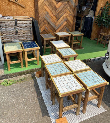 サイドテーブルにもなるタイル張りスツールのタイル張り 2020/08/08 サイドテーブルにもなるタイル張りスツールのタイル張り ジャスミンタイルとサブェイタイル サイドテーブルにもなるタイル張りスツールのタイル張り ジャスミンタイルとサブェイタイル こんばんは、tukuru woodwork fujimotoです。 昨日オイル仕上げしたタイル張りスツールの脚にタイル張りしました。 朝に用が有ったのでタイル張りは11時から始めました。 今日はシートで張れるジャスミンタイルとサブェイタイルを各6脚タイル張りしましたが 目地入れの時に日差しが強く暑すぎて目地を入れた先から乾いていくのでゆっくりしてられませんでした。 明日はランタンに取り掛かります。 お問い合わせ
