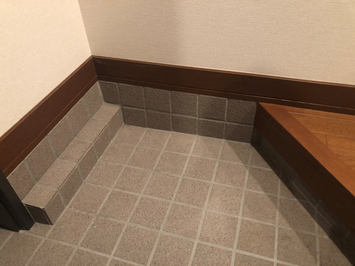 玄関が異形でそのうえ左下に出っ張りが有るので市販の物では置けないとの事です。