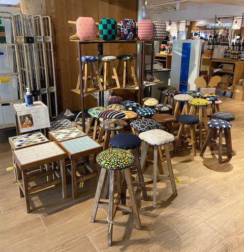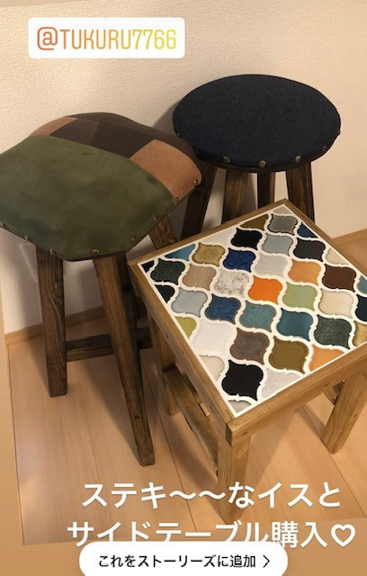 これから出かけるので帰りに寄りますと出掛けれらたのですが本当に夕方寄ってくださりタイル張りスツールと60㎝スツール2脚をご購入頂きInstagramのストリーズにもupしてくれました。