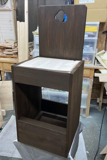 色を濃くして欲しいと追加要望が有り、オイルステインでは濃く出来ないので水性ステインでしっかり塗り込みしました。