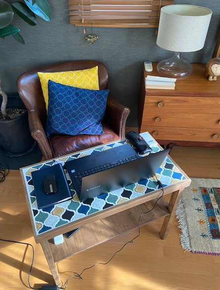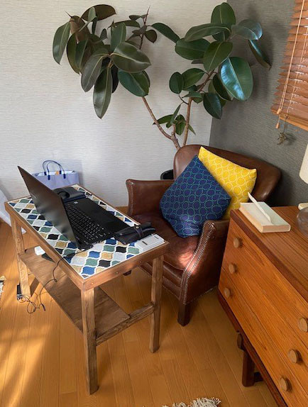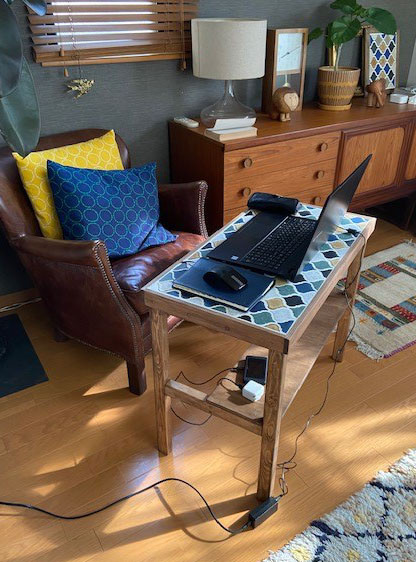 デスクなので足が入るように下の棚はハーフサイズにしてます。