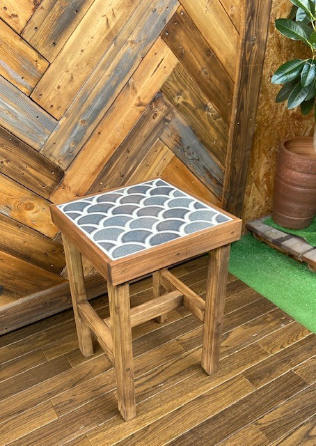 サイドテーブルにもなるタイル張りスツール 波紋シリーズ