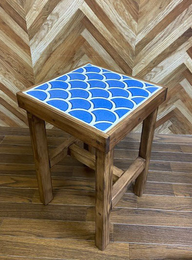 サイドテーブルにもなるタイル張りスツール波紋 ナマコ
