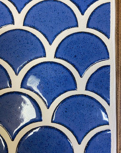 コバルトブルーに近い釉薬でタイルの縁が濃く成っています。