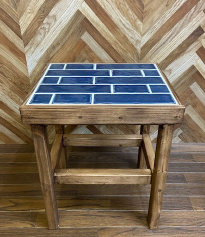 カフェでも人気でよく使われているサブウェイタイルを座面に使用したサイドテーブルにもなるタイル張りスツールです。
