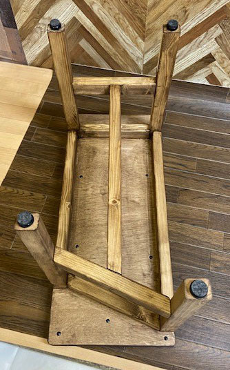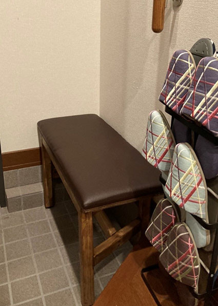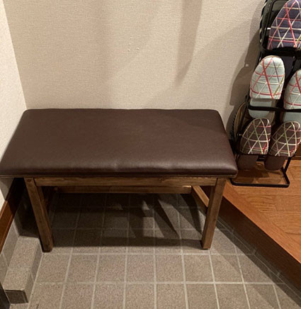 異形の玄関にどうしても椅子が欲しいと熱望されて作成しました。