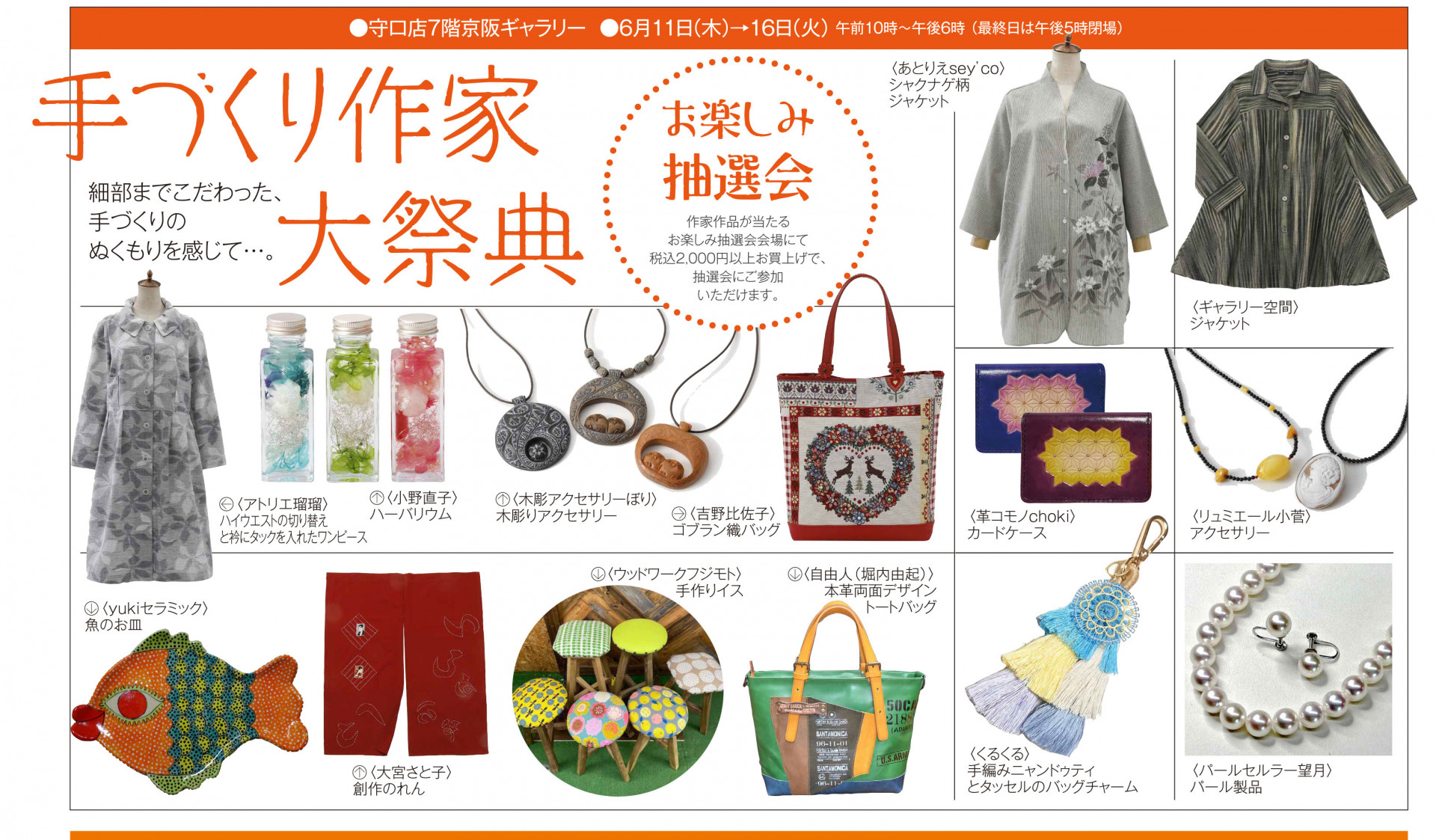 守口京阪百貨店「手づくり作家大祭典」催事出店します。 2020/06/01 京阪百貨店「手づくり作家大祭典」催事出店します。 7階ギャラリー 守口京阪百貨店「手作り作家大祭典」催事出店します。 7階ギャラリー こんばんは、tukuru woodwork fujimotoです。 3か月ぶりに催事出店致します。 6月11日から16日 10時から18時(最終日16日は15時まで) 守口京阪百貨店7階ギャラリー ストックいっぱい持って行きます。 マスクをして笑顔でお待ちしております。 お問い合わせ